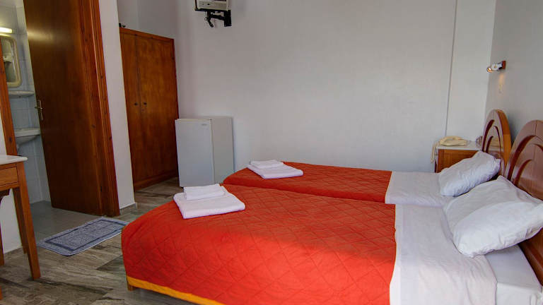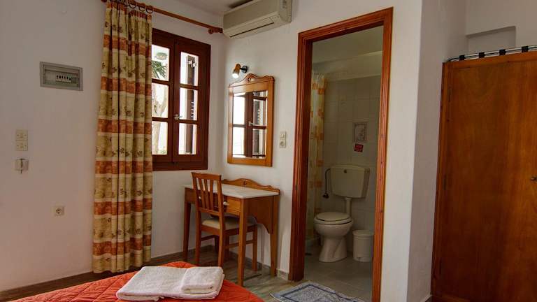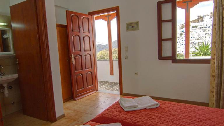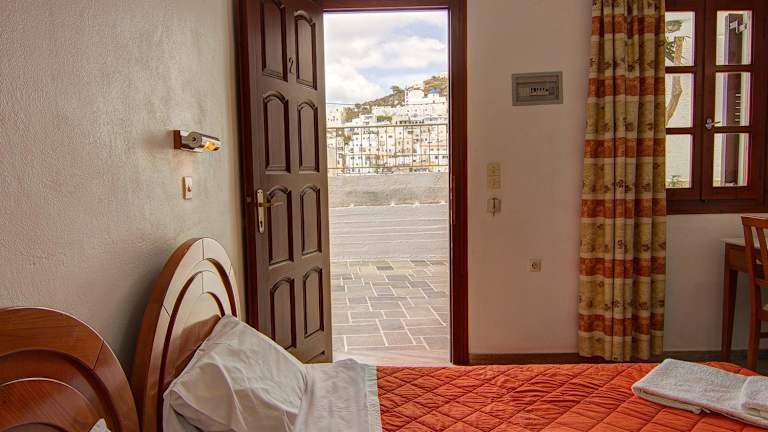 Die Zimmer im Hotel Lofos - The Hill sind im kykladischen Stil gestaltet und bieten eine gemütliche und einladende Atmosphäre. Die Zimmer sind klimatisiert und verfügen über kostenfreies WLAN sowie einen Gemeinschaftsbalkon. Die Zimmer sind mit Fliesenböden und dunklen Holzmöbeln eingerichtet und bieten Annehmlichkeiten wie einen Kühlschrank, einen TV und einen Safe. Die eigenen Badezimmer sind mit Duschen ausgestattet. Die meisten Zimmer bieten zudem einen herrlichen Blick auf die Altstadt von Ios.