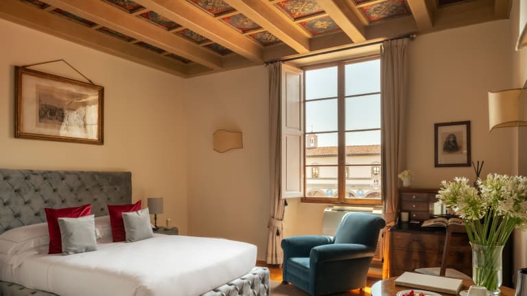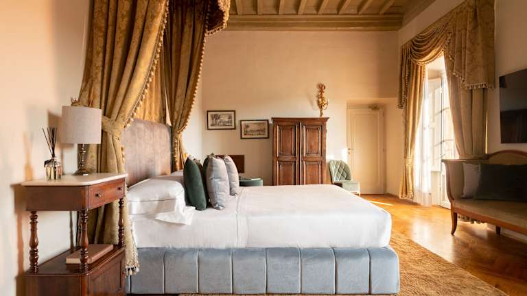 Die Zimmer im Loggiato dei Serviti sind einzigartig gestaltet und mit antiken Möbeln ausgestattet, die den Charme des historischen Gebäudes widerspiegeln. Jedes Zimmer bietet luxuriöse Stoffe, dunkle Holzmöbel und ein eigenes Badezimmer mit Haartrockner und Pflegeprodukten. Einige Zimmer verfügen über Himmelbetten oder bieten einen beeindruckenden Blick auf die Stadt. Alle Zimmer sind klimatisiert und verfügen über eine Minibar sowie Sat-TV. WLAN nutzen Sie in allen Bereichen des Hotels kostenfrei.