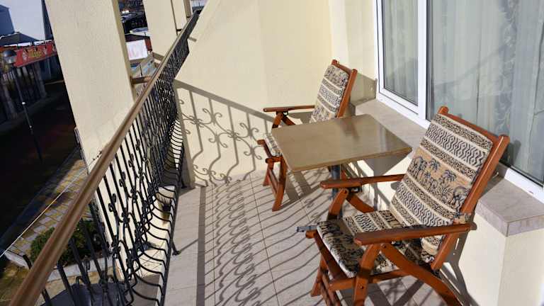 Die Zimmer im Lotus Hotel sind geräumig und verfügen über hohe Decken, die ein Gefühl von Weite und Komfort vermitteln. Die Betten sind weich und bequem, um einen erholsamen Schlaf zu gewährleisten. Jedes Zimmer verfügt über einen eigenen Balkon und ein zusätzliches Schlafsofa, um zusätzlichen Komfort zu bieten. Die Zimmer sind neu renoviert und bieten eine moderne Einrichtung.