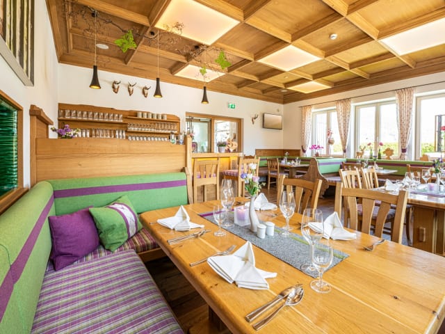 Regionalität, Nachhaltigkeit und Genuss kennzeichnen unser Restaurant im Hotel Loy. Auf der Speisekarte stehen traditionelle und internationale Gerichte. Die Zutaten stammen großteils von den umliegenden Bauern, aus der eigenen Jagd oder regionalen Gewässern. Eine ausgewählte Weinkarte ergänzt das Speisenangebot. Gerne beraten wir Sie bei der Auswahl persönlich. Das Restaurant bietet von 14:00 bis 21:00 Uhr warme Küche. Mittwoch Ruhetag. Unsere Hotelgäste erhalten eine Ermäßigung auf à-la-Carte-Speisen. Ein reichhaltiges Frühstücksbuffet ist im Preis inklusive.