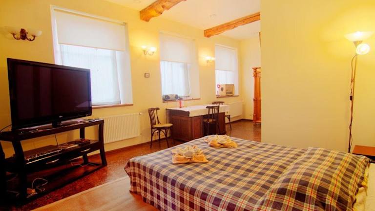 Das Hotel Luiize im Zentrum von Jēkabpils bietet seinen Gästen eine elegante Unterkunft mit kostenfreiem WLAN und Privatparkplätzen. Genießen Sie den malerischen Blick auf das Flussufer der Düna, das nur wenige Schritte vom Hotel entfernt liegt. Die Zimmer sind stilvoll eingerichtet und verfügen über ein eigenes Bad sowie einen TV mit DVD-Player. Starten Sie Ihren Tag mit einem leckeren Frühstück im hoteleigenen Restaurant und entspannen Sie gegen Aufpreis in der Finnischen Sauna mit Blick auf den Fluss. Das Hotel bietet auch Unterhaltungsmöglichkeiten wie Billard und Karaoke sowie einen kostenlosen Auto- und Fahrradverleih. Besuchen Sie am Wochenende den hoteleigenen Nachtclub, in dem regelmäßig Partys stattfinden. Der Bahnhof Krustpils ist nur 5 km entfernt und der mit einem Öko-Label ausgezeichnete See Radzu mit seinem Strand ist etwa 2,5 km entfernt. Eine Bushaltestelle erreichen Sie nach 1,3 km.