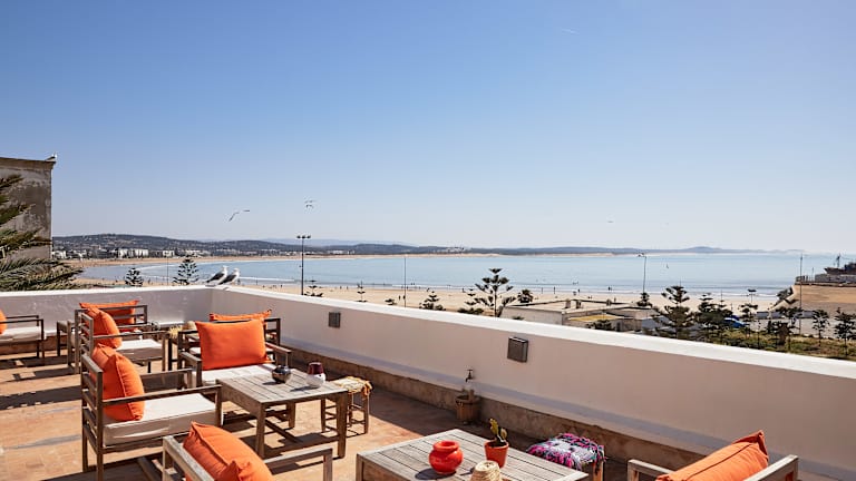 Das Hotel Madada Mogador liegt in Essaouira, nur 50 Meter vom Strand entfernt. Von der Terrasse aus können Sie einen Panoramablick auf die Bucht von Essaouira genießen. Die Lage des Hotels ermöglicht es Ihnen, die Medina und ihre Sehenswürdigkeiten bequem zu erreichen.