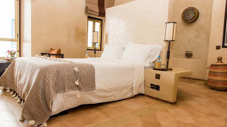 Die Zimmer im Hotel Madada Mogador sind individuell gestaltet und verfügen über eine minimalistische Einrichtung im östlichen Stil. Jedes Zimmer ist elegant eingerichtet und in neutralen Farbtönen gehalten. Zur modernen Ausstattung gehören ein Telefon, WLAN und eine Kochnische, in der Sie kleine Mahlzeiten zubereiten können. Das Badezimmer ist mit einer Dusche oder Badewanne und einem Haartrockner ausgestattet.