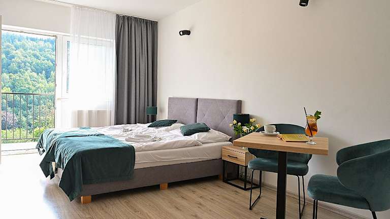 Das Hotel liegt idyllisch in der Nähe der malerischen Bergpfade und des beeindruckenden Sky-Walk-Turms. Es befindet sich etwa 10 Minuten zu Fuß durch den Zdrojowy-Park zum Zentrum und ermöglicht den Gästen, die unberührte Natur auf einer Höhe von 496 m zu genießen. Der Flughafen Wrocław ist ca. 150 km entfernt und der Bahnhof Świeradów Zdrój befindet sich in einer Entfernung von ca. 500 m.
