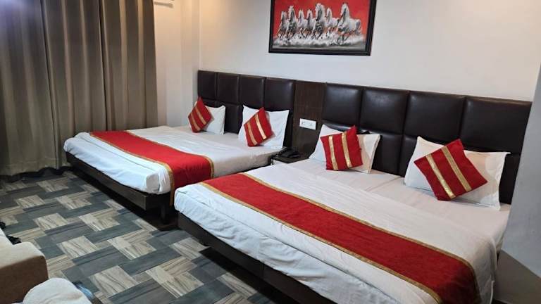 Die Zimmer im Hotel Maha Luxmi Palace sind komfortabel und gut ausgestattet. Jedes Zimmer verfügt über ein eigenes Bad mit kostenlosen Pflegeprodukten, einen Flachbild-TV und Klimaanlage. Ein Wasserkocher steht ebenfalls zur Verfügung. Einige Zimmer bieten auch einen separaten Sitzbereich. Alle Zimmer sind zudem mit einem Safe ausgestattet, um die Sicherheit der Gäste zu gewährleisten.