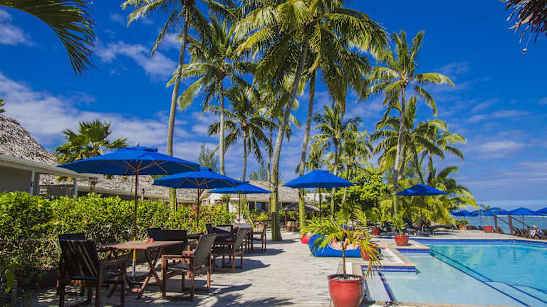 Das Hotel Manuia Beach befindet sich in Rarotonga, direkt am Strand und in der Nähe der Lagune. Die Lage ist an der dem Sonnenuntergang zugewandten Küste, umgeben von tropischen Gärten.
