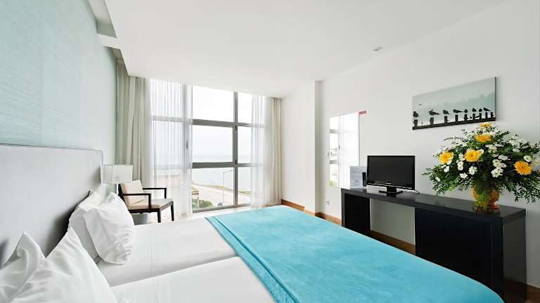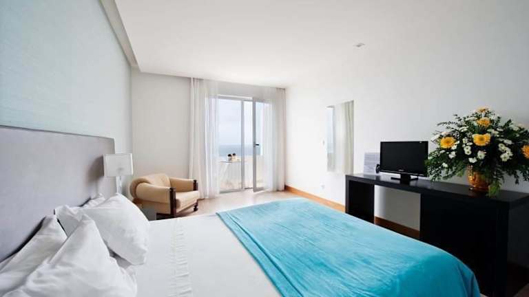 Die Zimmer im Hotel Mar e Sol & Spa sind modern und stilvoll eingerichtet. Sie verfügen über Parkettböden und eine elegante Einrichtung in blauen und grünen Farbtönen. Die Zimmer sind schallisoliert und mit Annehmlichkeiten wie einer Minibar und einem eigenen Badezimmer ausgestattet. Einige Zimmer bieten auch einen Balkon oder eine Terrasse mit Meerblick.