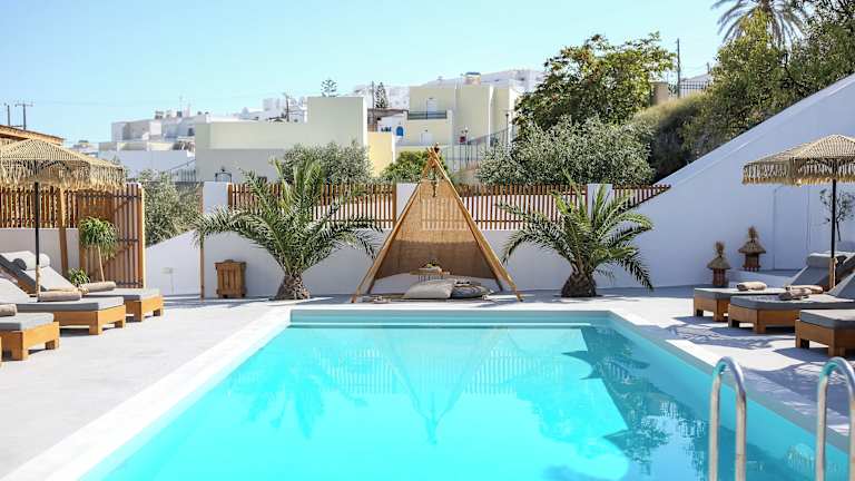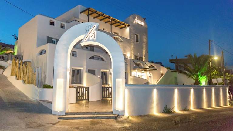 Das Margarita Hotel liegt in Firostefani und bietet eine ideale Lage, nur 50 m von der Caldera entfernt. Von hier aus haben Sie einen atemberaubenden Blick auf das Ägäische Meer und können die Schönheit der Umgebung in vollen Zügen genießen. Das Hotel befindet sich auch in der Nähe des Hafens Athinios und des internationalen Flughafens Santorin, was die Anreise zum Hotel einfach und bequem macht.