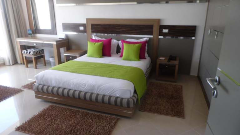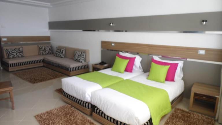 Die Zimmer sind klimatisiert und verfügen über einen Balkon oder eine Terrasse mit Stadt- oder Meerblick. Zur Ausstattung gehören ein Doppelbett, ein Schreibtisch, ein Safe, eine Minibar sowie eine Kochnische mit Kühlschrank und Mikrowelle. Ein TV mit Satellitenempfang ist ebenfalls vorhanden. In den Badezimmern gibt es sowohl eine Dusche als auch eine Badewanne sowie einen Haartrockner und Kosmetikartikel. Es sind auch Zimmer für Familien und Nichtraucher verfügbar.