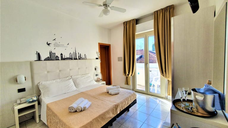 Die klimatisierten Zimmer im Hotel Marina sind komfortabel und verfügen über einen Balkon sowie ein eigenes Badezimmer. Zur Ausstattung gehören auch ein Schreibtisch und ein Flachbild-TV. Ein kostenloser Safe steht Ihnen ebenfalls zur Verfügung.