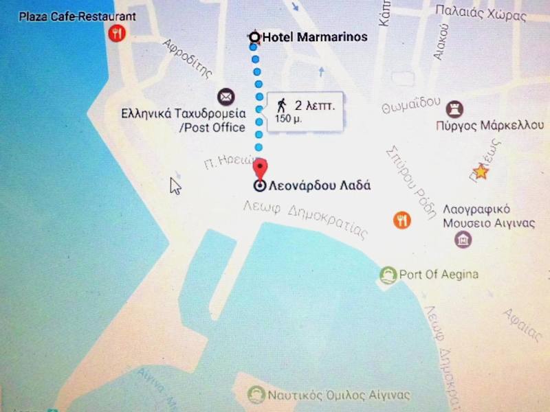 Das Hotel Marmarinos befindet sich in einer ruhigen Lage, nur 100 m vom Strand von Ägina entfernt. Der Hafen ist in nur 3 Gehminuten zu erreichen. In der Nähe finden Sie Geschäfte und Restaurants, die Sie ebenfalls in wenigen Minuten zu Fuß erreichen können. Das malerische Dorf Perdika ist nur 10 km entfernt und der berühmte Aphaiatempel ist 12 km entfernt. Die Unterkunft bietet auch kostenlose Privatparkplätze für Ihre Bequemlichkeit.