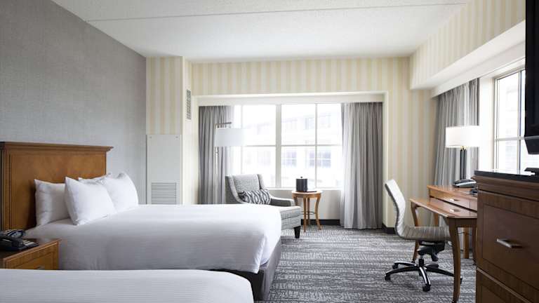 Das Hartford Marriott Downtown ist ein komfortables Hotel, das sich gegenüber dem Connecticut Convention Centre und in der Nähe des XL Centre befindet. Hier erwartet Sie ein angenehmer Aufenthalt mit Annehmlichkeiten wie einem Innenpool und kostenfreiem WLAN in den öffentlichen Bereichen. Die Zimmer sind gut ausgestattet und verfügen über Klimaanlage, Zubereitungsmöglichkeiten für Heißgetränke und einen LCD-Sat-TV. Sie können auch das Fitnesscenter, das Spa und das Businesscenter nutzen. Das Hotel bietet Ihnen die Möglichkeit, sich im Starbucks mit einem Kaffee zu verwöhnen und im Vivo Restaurant köstliche italienische Spezialitäten zu genießen. In der Umgebung gibt es auch zahlreiche Golfplätze, die innerhalb von 8 km erreichbar sind. Das Hartford Marriott Downtown bietet Ihnen Parkplätze direkt vor Ort und ist nur 4,8 km vom Flughafen Hartford-Brainard entfernt.