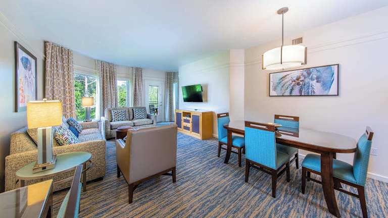 Die Villen im Marriott's Cypress Harbour sind geräumig und bieten Platz für bis zu 6 Personen. Sie verfügen über ein separates Wohnzimmer mit einem Schlafsofa und einem Esstisch. Jede Villa ist mit einer voll ausgestatteten Küche ausgestattet, sodass Sie Ihre eigenen Mahlzeiten zubereiten können. Ein Balkon oder eine Veranda mit Seeblick sorgen für eine entspannte Atmosphäre. Zur Ausstattung gehören auch ein Haushaltsraum mit Waschmaschine und Wäschetrockner.