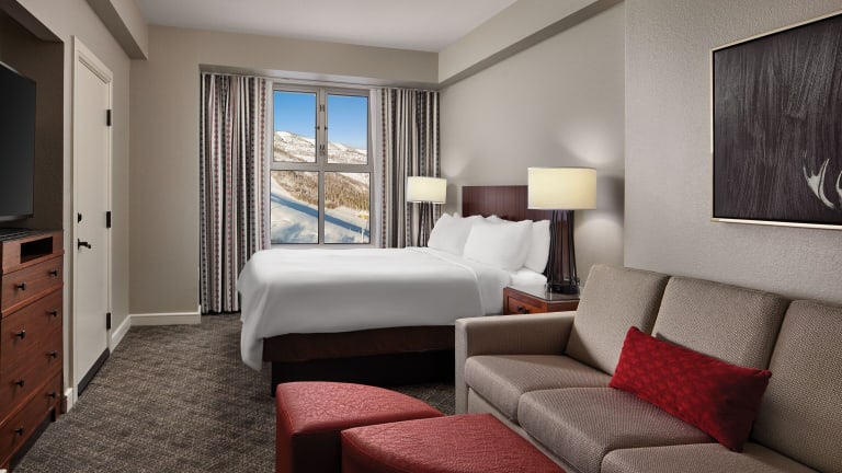 Die Zimmer im Marriott's MountainSide Hotel sind modern und komfortabel eingerichtet. Jedes Zimmer verfügt über einen 32-Zoll-Flachbild-TV, kostenfreies WLAN und eine Küchenzeile mit Mikrowelle und Kaffeemaschine. Die Zimmer sind geräumig und bieten einen separaten Essbereich.