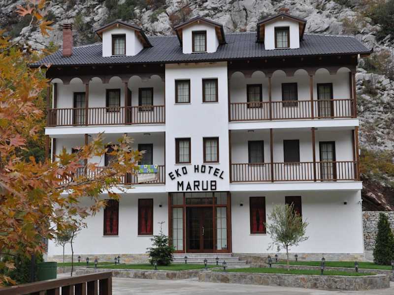 Das Hotel Marub befindet sich in einem bewaldeten Tal, umgeben von Bergen, in der Region Mirdita. Es liegt etwa 2 km von der Landesstraße SH30 entfernt. Die Küste der Adria und die Stadt Lezhë sind ca. 30 km entfernt, während die Hauptstadt Tirana in etwa 70 km Entfernung liegt. Die Lage des Hotels bietet Ruhe und Naturverbundenheit sowie die Möglichkeit, die umliegende Region zu erkunden.