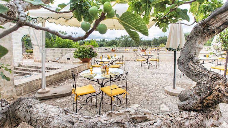 Im gastronomischen Bereich des Hotels gibt es drei Restaurants, darunter das Restaurant Al Fresco, das Spezialitäten und Weine aus Apulien sowie italienische Küche serviert. Das Hotel legt Wert auf Regionalität und baut eigenes Gemüse und Obst an. zusätzlich kann eine Übernachtung mit Frühstück gebucht werden.