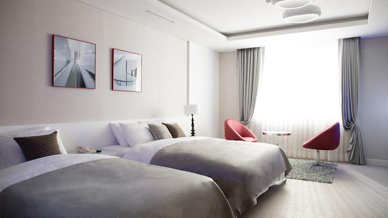 Die Zimmer im Hotel Mate Bundang sind wunderschön eingerichtet und bieten den Gästen Komfort und Bequemlichkeit. Jedes Zimmer verfügt über raumhohe Fenster, eine Klimaanlage und Heizung, einen Sitzbereich und einen Flachbild-TV. Die Badezimmer sind mit einer Badewanne oder einer Dusche, kostenfreien Pflegeprodukten und Bademänteln ausgestattet. WLAN steht den Gästen kostenlos zur Verfügung.