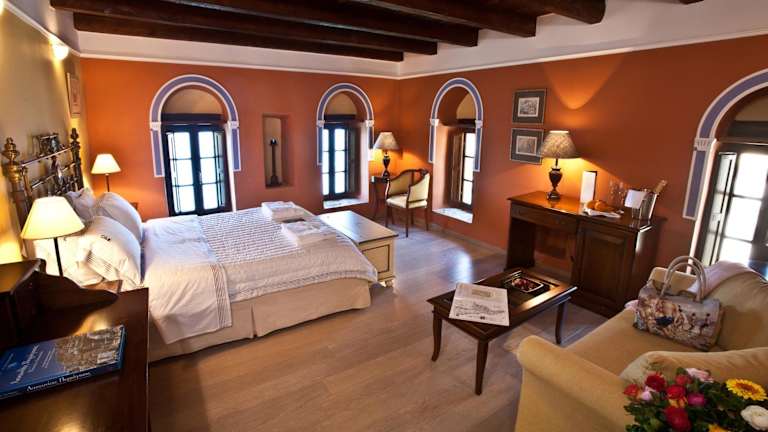 Das Hotel Mavromichalai bietet geschmackvoll eingerichtete Zimmer und geräumige Suiten, die in warmen Farben gehalten sind. Jedes Zimmer ist klimatisiert und verfügt über einen LCD-TV, eine Minibar und einen Safe. Das Badezimmer ist aus Stein und Marmor und mit kostenfreien Pflegeprodukten, Bademänteln, Hausschuhen und einem Haartrockner ausgestattet. Die Unterkunft bietet auch kostenfreies WLAN in allen Bereichen.