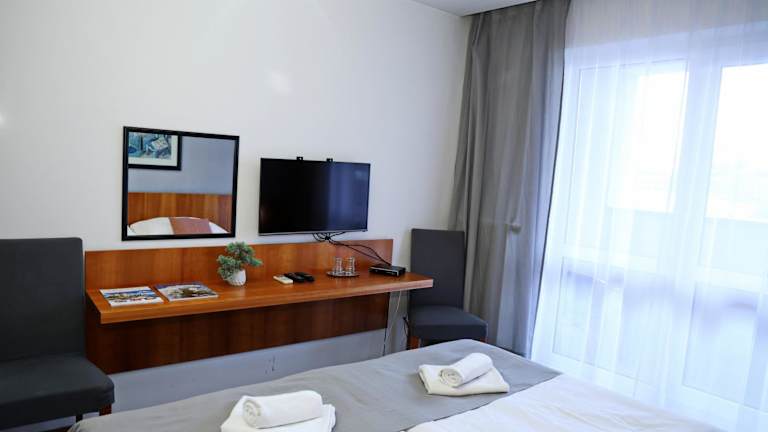 Die Zimmer im Hotel Maxim sind modern und komfortabel eingerichtet und verfügen alle über ein eigenes Bad und Kabel-TV. Sie bieten den Gästen eine angenehme Atmosphäre, in der sie sich entspannen und erholen können.