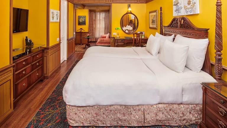 Die Zimmer im Mayfair Darjeeling sind geräumig und im klassischen indischen Stil eingerichtet. Sie verfügen über Flachbild-TVs und sind in angenehmen Pastelltönen gehalten. Die geschnitzten Holzmöbel verleihen den Zimmern einen authentischen Charme. Jedes Zimmer bietet zudem ein gemütliches Sofa und einen Kamin für zusätzlichen Komfort. Das eigene Badezimmer ist mit einer Badewanne und einem Haartrockner ausgestattet.