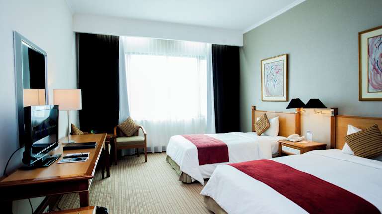 Das Menara Peninsula Hotel verfügt über 387 Zimmer, die sich über 24 Etagen erstrecken. Die Zimmer sind über einen Aufzug erreichbar und bieten Annehmlichkeiten wie Klimaanlage, Safe und Minibar. Ein Schreibtisch und kostenfreies WLAN sind ebenfalls vorhanden. Die Badezimmer sind mit einer Dusche, Badewanne und einem Bidet ausgestattet. Ein Haartrockner und Bademäntel stehen zur Verfügung.