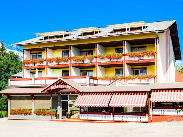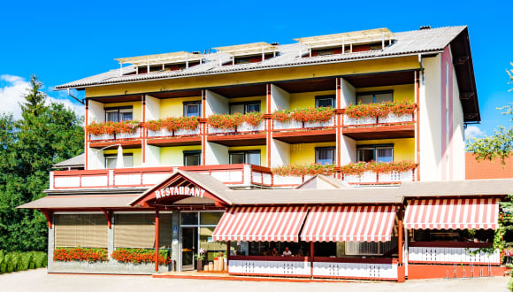 Der Gasthof Menüwirt liegt in einer günstigen Lage, nur 7 Gehminuten vom eigenen Strand am Klopeiner See entfernt. Der See bietet eine Vielzahl von Freizeitaktivitäten wie Schwimmen, Surfen und Angeln. Die Walderlebniswelt Klopeinersee ist nur 300 m entfernt und bietet spannende Abenteuer für die ganze Familie. Für Golfbegeisterte befindet sich ein 18-Loch-Golfplatz nur 4 km entfernt. Die Umgebung lädt auch zu Wanderungen und Radtouren ein, um die schöne Landschaft der Region zu erkunden.