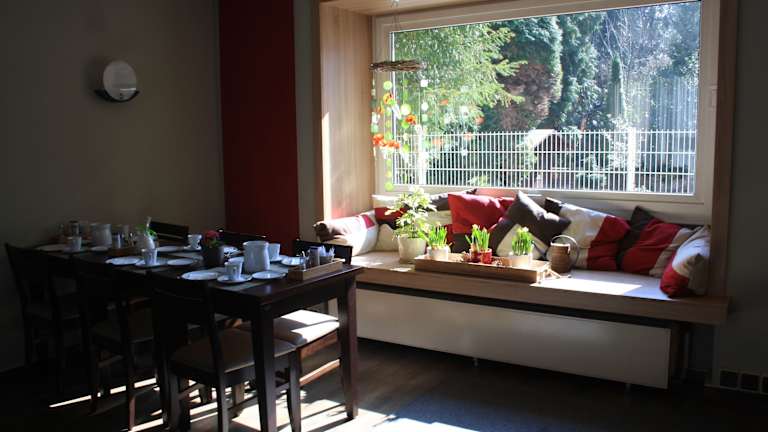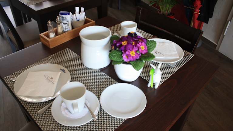 Jeden Morgen erwartet die Gäste im gemütlichen Frühstücksraum ein reichhaltiges und abwechslungsreiches Frühstücksbuffet. Dies sorgt für einen guten Start in den Tag und bietet eine Auswahl an verschiedenen Speisen und Getränken.
