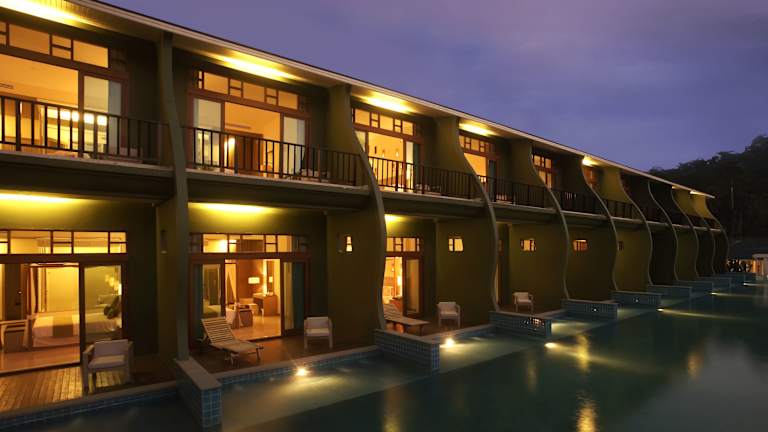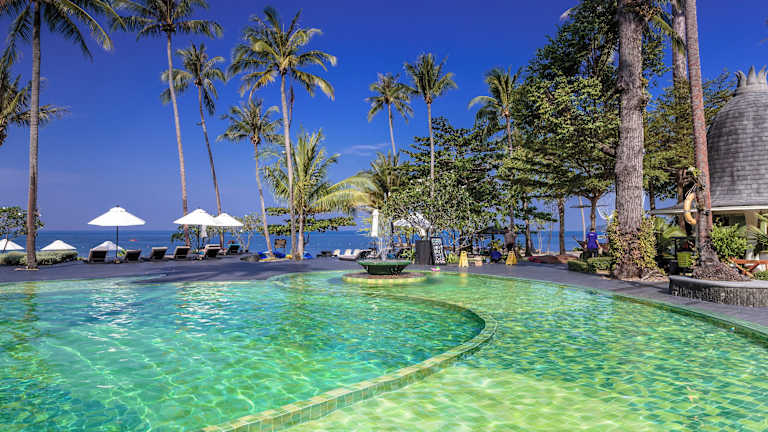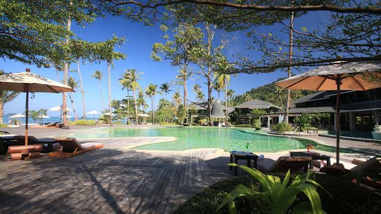 Das Mercure Koh Chang Hideaway - SHA Extra Plus befindet sich auf der zweitgrößten Insel Thailands, Koh Chang, in der Bucht Bai Lan. Die Insel ist ein natürlicher Rückzugsort mit einer beeindruckenden Fauna und Flora sowie atemberaubenden Landschaften. Das Hotel liegt direkt am Strand und bietet einen spektakulären Blick auf das Meer und die umliegenden Berge. In der Nähe des Hotels befindet sich die Talstation der Seilbahn, die Sie zu den Gipfeln der Insel bringt. Die Stadt Trat ist etwa 44 km entfernt und Bangkok erreichen Sie nach einer 5-stündigen Fahrt.