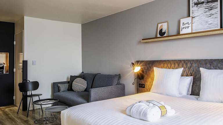 Das Hotel verfügt über 144 Zimmer, die mit Klimaanlage, Doppelbett oder Sofabett, Minibar, Telefon, TV und WLAN ausgestattet sind. Es stehen auch rollstuhlgerechte Zimmer zur Verfügung. Familienzimmer sind ebenfalls vorhanden.