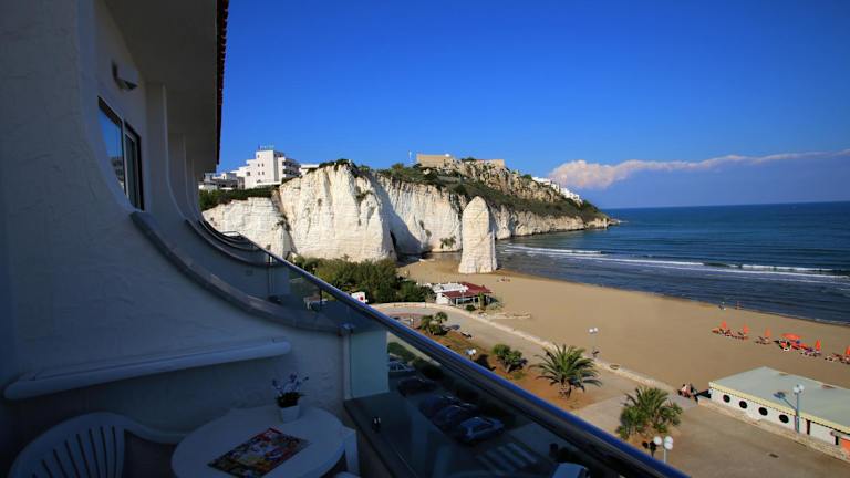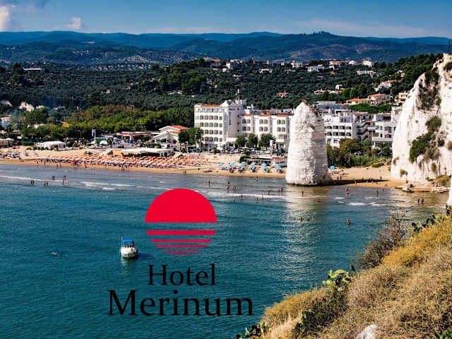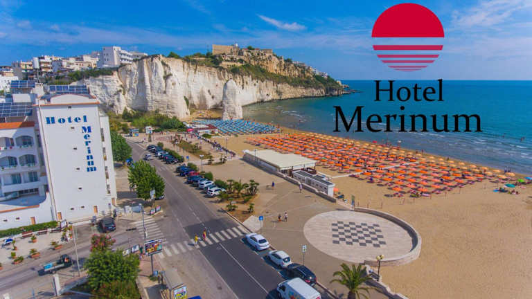 Das Hotel Merinum befindet sich direkt am Meer, gegenüber von Vieste Pizzomunno. Das Stadtzentrum sowie das Schloss Vieste sind etwa 500 m entfernt. In der näheren Umgebung liegen zudem das Naturschutzgebiet Foresta Umbra und San Giovanni Rotondo, das 74 km entfernt ist.
