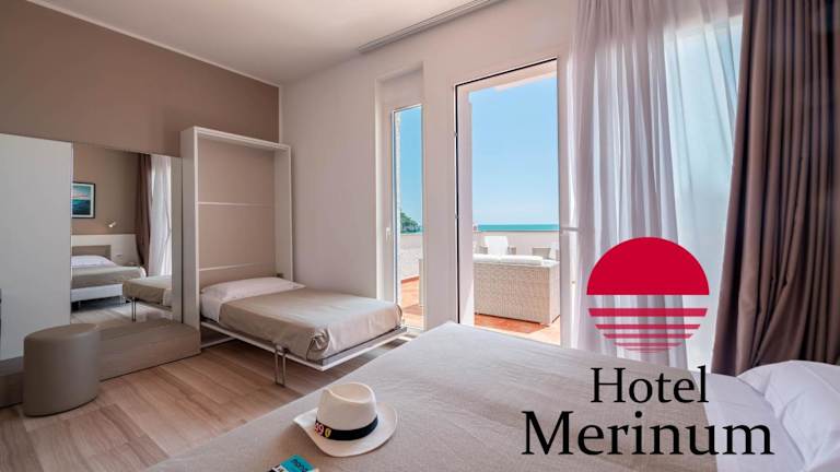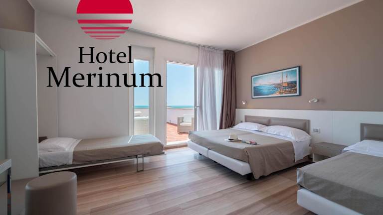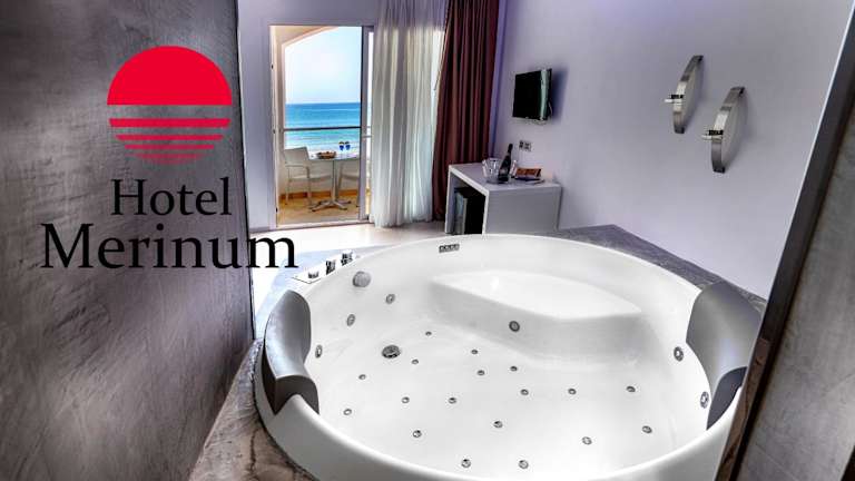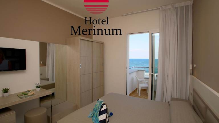 Die Zimmer im Hotel Merinum sind mit Klimaanlage, Sat-TV und einem Minikühlschrank ausgestattet und bieten einen Balkon mit Meerblick. Die Suiten verfügen über eine Whirlpool-Badewanne. Alle Zimmer sind schallisoliert und ermöglichen einen ruhigen Aufenthalt. Die Klimaanlage ist von Mitte Juni bis zur ersten Septemberwoche verfügbar.