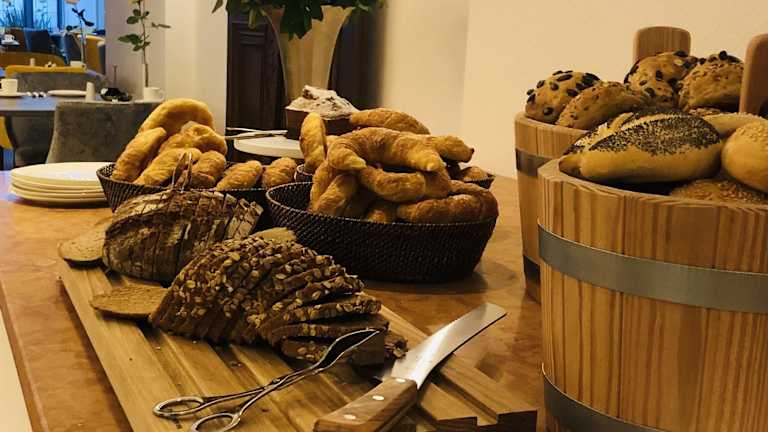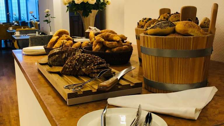 Morgens wird ein reichhaltiges Frühstücksbuffet mit frisch zubereiteten Speisen angeboten.