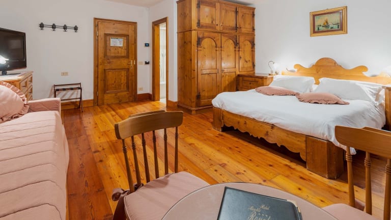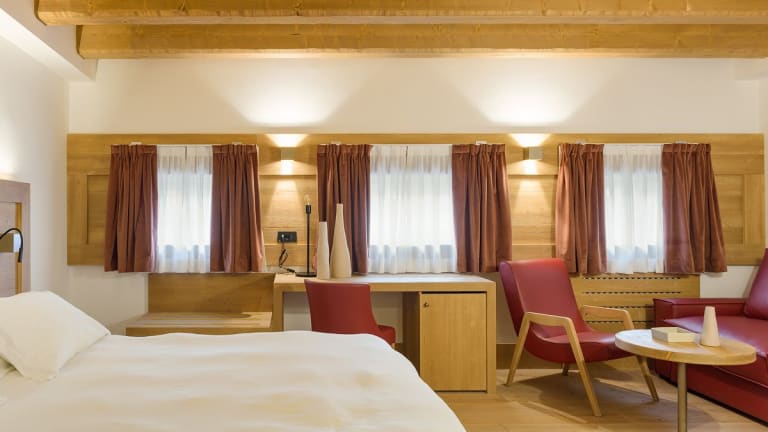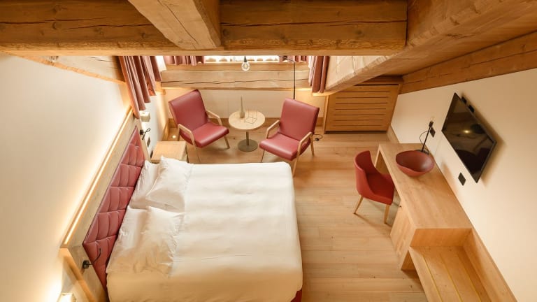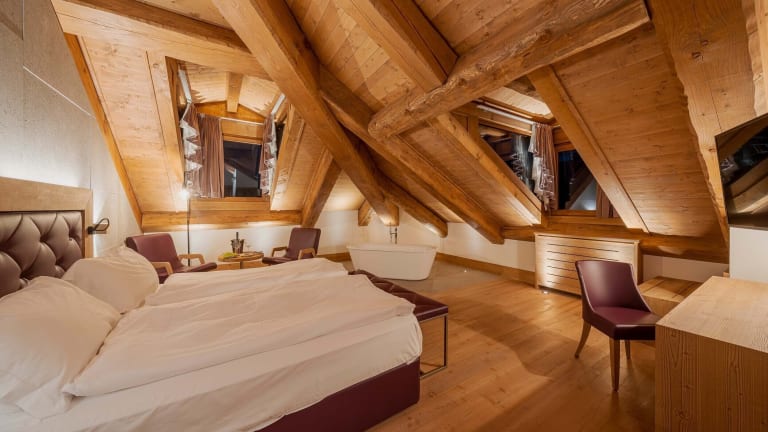 Die Zimmer sind im alpenländischen Stil eingerichtet und verfügen über Holzböden und Holzmobiliar. Sie sind mit einem Kingsizebett, einem Sofabett und einer Klimaanlage ausgestattet. Zu den weiteren Annehmlichkeiten gehören ein Safe, eine Minibar, eine Tee-/Kaffeemaschine, ein TV-Gerät mit Satelliten-/Kabelempfang, WLAN und ein Badezimmer mit Dusche sowie Haartrockner. Das Hotel bietet Familien- und Nichtraucherzimmer an.