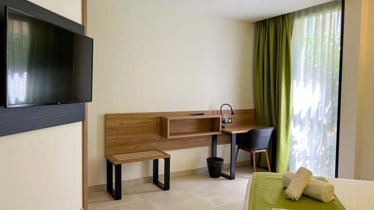 Die Zimmer im Hotel MG Poniente sind komfortabel und bieten Annehmlichkeiten wie kostenfreies WLAN, einen Flachbild-Sat-TV und ein eigenes Bad. Die klimatisierten Zimmer sind mit Bettwäsche und Handtüchern ausgestattet, um den Gästen einen angenehmen Aufenthalt zu ermöglichen.
