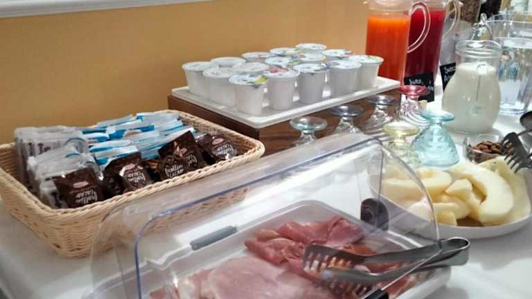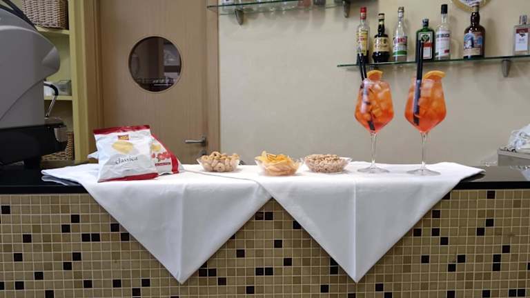 Ein Frühstück wird in Form eines Buffets oder als italienisches Frühstück angeboten. Außerdem steht eine Snackbar zur Verfügung, in der Gäste Getränke genießen können.