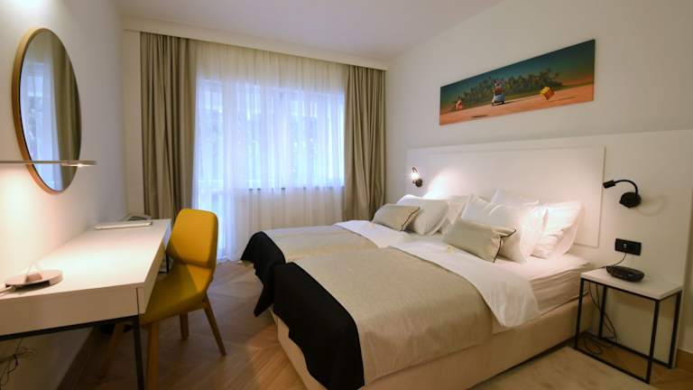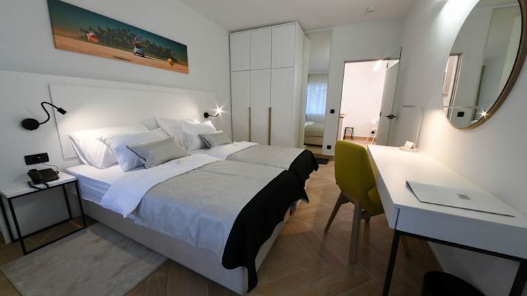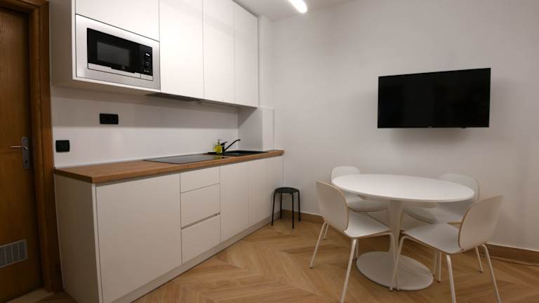 Die Apartments im Aparthotel Milenij sind modern und komfortabel eingerichtet. Sie verfügen über eine Klimaanlage, Sat-TV und eine gut ausgestattete Küche. Einige der Zimmer haben auch eine Hydromassage-Badewanne im eigenen Badezimmer.