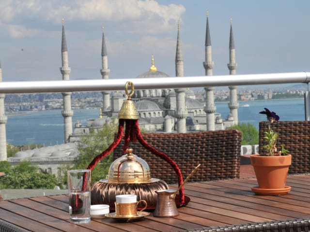 Das Mina Hotel in Istanbul bietet eine ideale Lage im Herzen der Altstadt von Sultanahmet. Mit modernen Annehmlichkeiten und einem 24-Stunden-Zimmerservice können Gäste hier einen angenehmen Aufenthalt genießen. Das Hotelrestaurant und die Bar bieten eine entspannte Atmosphäre und eine Terrasse mit herrlichem Blick auf das Marmarameer. Das freundliche Personal steht Ihnen rund um die Uhr zur Verfügung, um Ausflüge zu organisieren und Ihnen bei allen Fragen behilflich zu sein. Die historischen Sehenswürdigkeiten von Sultanahmet befinden sich in unmittelbarer Nähe.