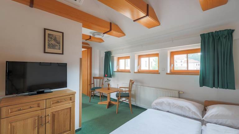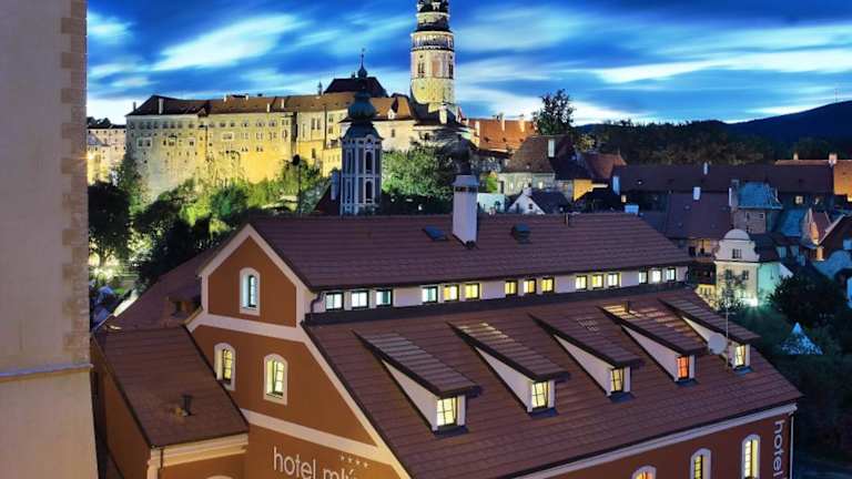 Das Hotel Mlýn befindet sich im Herzen des historischen Zentrums von Český Krumlov und bietet eine atemberaubende Aussicht auf die Moldau. In unmittelbarer Nähe des Hotels befinden sich das Schloss Český Krumlov und das Regionalmuseum. Der Golfplatz der Stadt Český Krumlov und das Kloster Zlatá Koruna sind ebenfalls leicht zu erreichen. Die nächste Bushaltestelle ist nur 1 km entfernt und der Bahnhof 3 km. Öffentliche Parkplätze stehen gegen Aufpreis zur Verfügung.