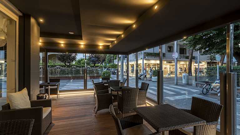 Das Hotel Mocambo befindet sich in der Fußgängerzone Viale Dante in Riccione, nur 50 Meter von der neuen Strandpromenade und dem Kongresszentrum Palacongressi entfernt. Die zentrale Lage ermöglicht es den Gästen, die Geschäfte und Bars des berühmten Viale Ceccarini in nur 2 Minuten zu Fuß zu erreichen. Die Umgebung bietet auch eine gute Anbindung an den öffentlichen Nahverkehr, da die nächste Bushaltestelle nur 50 Meter entfernt ist und der Bahnhof Riccione in nur 5 Minuten zu Fuß erreichbar ist.