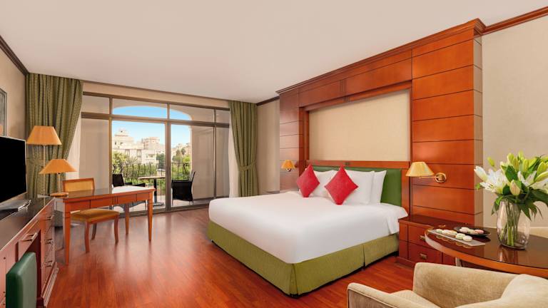 Die Zimmer im Mövenpick Hotel Jeddah sind geräumig und elegant gestaltet. Jedes Zimmer verfügt über einen Schreibtisch und eine Minibar, um Ihren Aufenthalt so angenehm wie möglich zu gestalten. Große Fenster und Holzmöbel verleihen den Zimmern ein luxuriöses Ambiente.