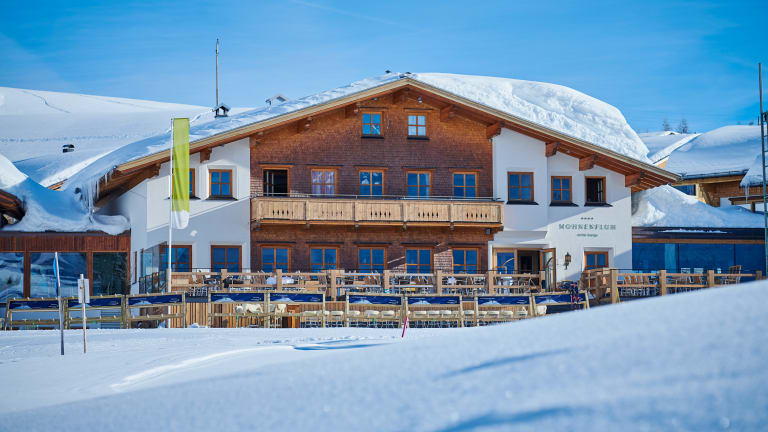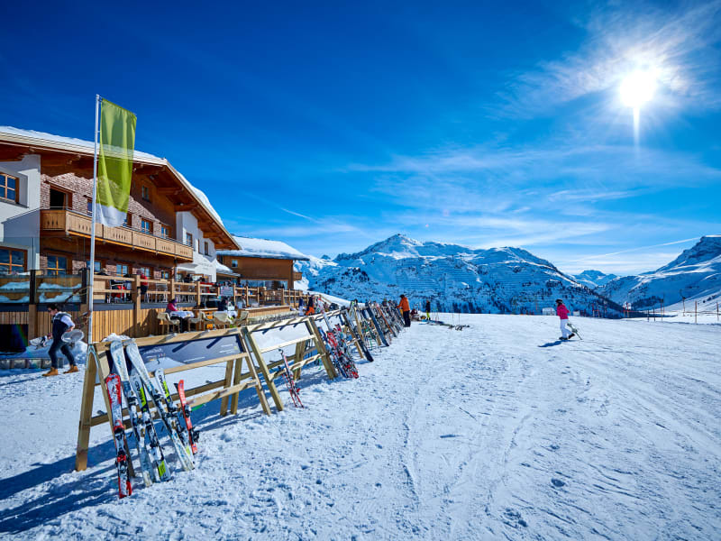 Privilegiert gelegen: Das Hotel Mohnenfluh liegt auf einem traumhaften Sonnenplateau in 1.750 Meter Höhe in Oberlech. Neben Sonnenschein von morgens bis abends genießen Sie hier auch das Privileg wirklich mitten drin zu wohnen: Denn die Pisten und Wanderwege des Arlbergs führen direkt am Hotel vorbei.