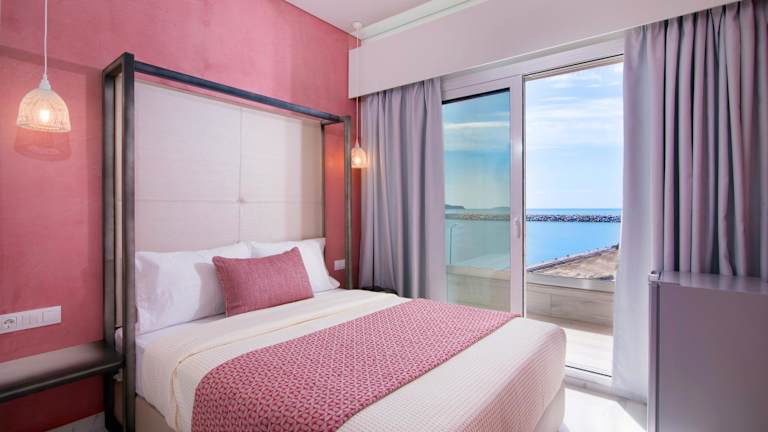 Die klimatisierten Zimmer im Molos Hotel sind hell und luftig gestaltet und verfügen über einen eigenen Balkon, von dem aus Sie den Blick auf die Ägäis genießen können. Zur Ausstattung gehören ein Flachbild-TV, ein Minikühlschrank, ein Safe und ein Haartrockner.