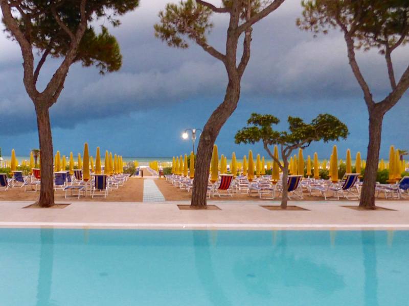 Das Hotel Mon Repos befindet sich in einer erstklassigen Lage in Lido di Jesolo, mit einem eigenen Strand und herrlichem Meerblick. Sie können bequem zu den wichtigsten Einkaufsstraßen der Stadt spazieren und die Annehmlichkeiten der Umgebung genießen. Machen Sie einen Tagesausflug nach Venedig oder erkunden Sie die umliegenden Städte und Sehenswürdigkeiten wie Triest, die Dolomiten und den Themenpark Aqualandia.