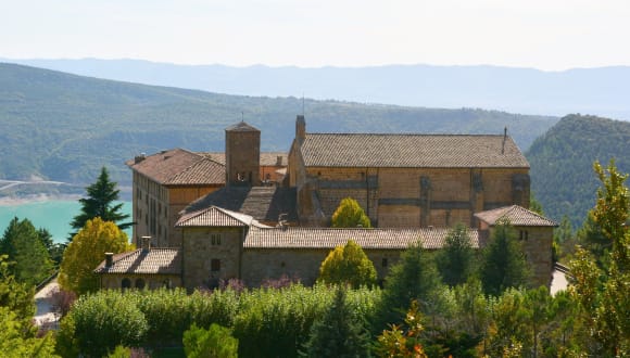 Im historischen Kloster Leyre erwartet Sie das Hotel Monasterio de Leyre in idyllischer Lage, nur 35 Fahrminuten von Pamplona entfernt. Die einfachen, aber gemütlichen Zimmer bieten einen herrlichen Blick auf die Berge und verfügen über Zentralheizung sowie kostenloses WLAN. Im Restaurant können Sie sich mit moderner und traditioneller Küche verwöhnen lassen. Während Ihres Aufenthalts haben Sie die Möglichkeit, das beeindruckende Kloster aus dem 9. Jahrhundert zu besichtigen und die wunderschöne Umgebung der Sierra de Leyre mit ihren Wanderwegen zu erkunden. Der Yesa-Stausee ist nur 7 km entfernt und auch die spanischen Pyrenäen sowie die französische Grenze sind gut erreichbar.