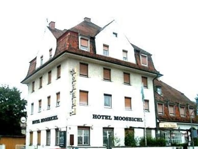 Herzlich Willkommen in München! Hotel Moosbichl, ein typisch altbayerisches Hotel mit bayr. Gemütlichkeit. Unser familier geführtes Hotel verfügt über 18 Zimmer in der Kategorie-Art 3 Sterne. Austattung der Zimmer: Du/WC/TV/Radiowecker/Haarfön, Internet DSL-Flatrate kostenloser Service Tiere sind herzlich willkommen und haben keinen Aufpreis. Unsere Einzelzimmer sind mit franz. Betten ausgestattet. Unser Hotel im Norden von München, liegt in ruhiger, zentraler Lage zwischen Olympiagelände und Schloß Nymphenburg. Verkehrsgünstige Anbindung: S1 Moosach, Busse, Tram in 50 m Entfernung. Lage:Oktoberfest in 5 min., Innenstadt in 10 min, 1/2 Std. zur Messe und Allianzarena. 1500 m zur Autobahn A99/A8/A9 Tagungsraum für 10 - 25 Personen. Genießen die das gemütliche Ambiente in unserer Bistrobar im Haus.