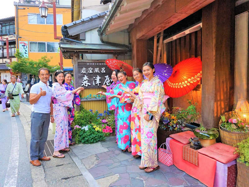 Das Hotel Morizuya liegt gegenüber der zentralen Einkaufsstraße von Kinosaki Onsen, einem Viertel mit heißen Quellen. Die Unterkunft ist nur eine kurze Fahrt von der Kinosaki Marine World entfernt und nur wenige Gehminuten vom Bahnhof Kinosaki Onsen entfernt. In der Umgebung gibt es auch die historische Stadt Izushi mit ihrer Burg, die einen Besuch wert ist.