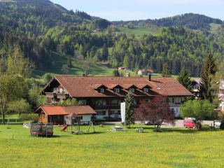 Früh und Abend Am Morgen lockt Sie der Duft nach frischem Kaffee ein herrlich unser gedecktes Frühstücksbüffet. Frischer Obstsalat, Käse aus der Bergkäserei Steibis, feine Marmeladen ... Vielleicht noch kurz vor dem Frühstück ins Hallenbad, so kann der Tag beginnen. Nach dem Abendessen geht's dann noch auf ein Gläschen in die Bar oder auf die Ofenbank am Kachelofen. An lauen Sommertagen treffen wir uns am Jägerhüttel zum Grillen oder einen netten Plausch, wenn dann die Holzscheite knistern, wird die Gitarre ausgepackt ...