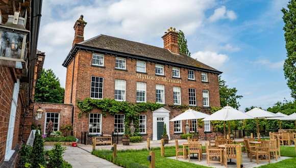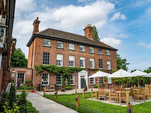 Das Mytton and Mermaid - Brunning and Price ist ein beeindruckendes denkmalgeschütztes Gebäude aus dem Jahr 1735 mit einem malerischen Garten und weitläufigen Rasenflächen, die bis zum Flussufer reichen.