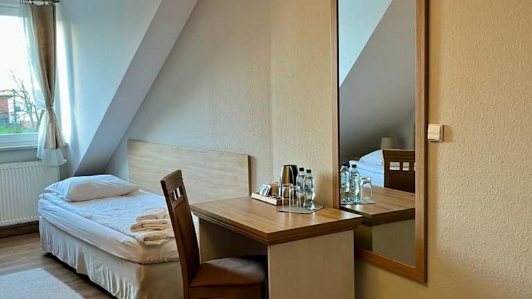 Morgens erwartet Sie ein reichhaltiges Frühstücksbuffet in der Unterkunft. Im À-la-carte-Restaurant können Sie bayerische und schlesische Spezialitäten genießen. Im Sommer steht Ihnen gegen Aufpreis auch ein Grillplatz zur Verfügung.