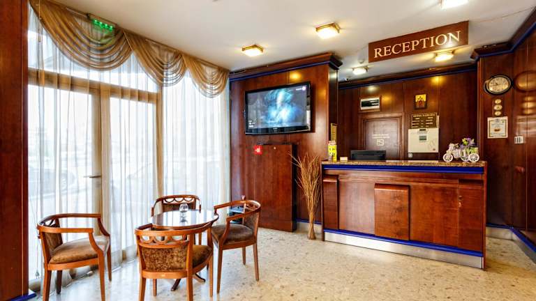 Das Nadejda Hotel befindet sich am Stadtrand von Sofia und ist nur 5 km vom Stadtzentrum entfernt. Es bietet seinen Gästen eine günstige Lage, um die Sehenswürdigkeiten und Geschäfte der Stadt zu erkunden. Der Flughafen Sofia ist nur 15 km entfernt und der Bahnhof Gare Centrale Sofia ist 6 km entfernt. Supermärkte und Geschäfte befinden sich in unmittelbarer Nähe des Hotels. Öffentliche Verkehrsmittel sind direkt vor dem Hotel verfügbar.